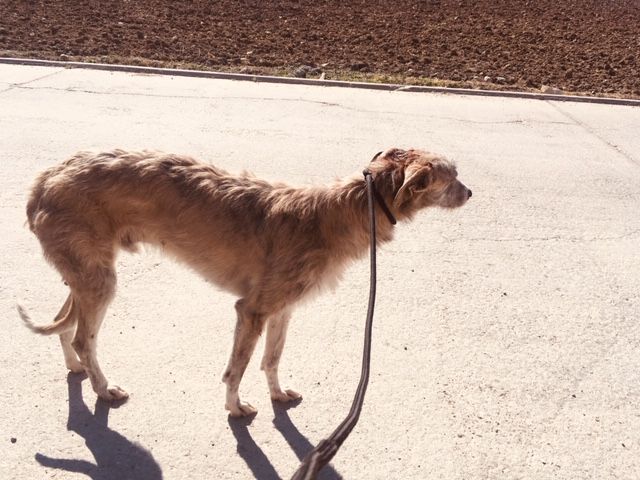 acho galgo atigrado, esta herido y es sociable