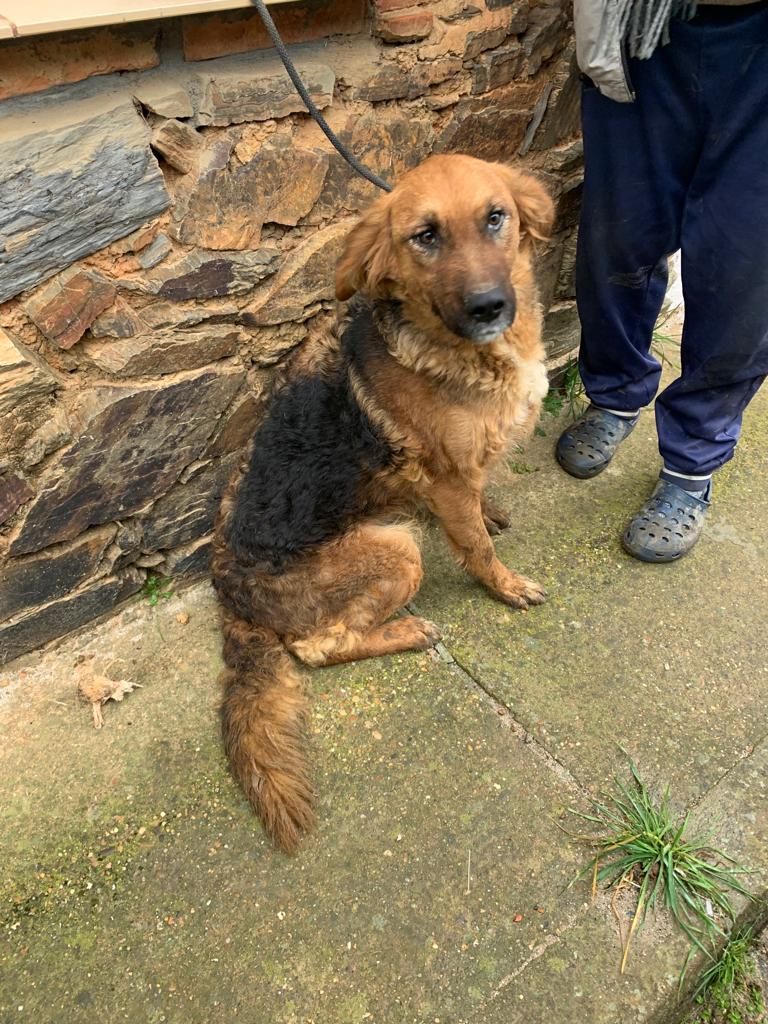 Mestiza de pastor, tamaño grande y sociable.