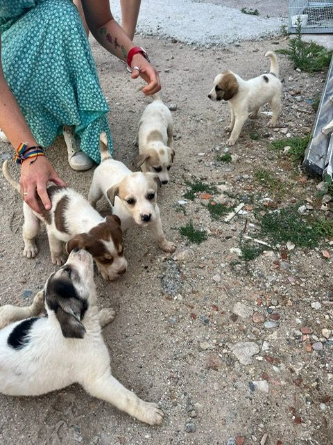 Aproximadamente de mes y medio. Cuatro machos y una hembra (ADOPTADA).